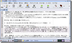 以上、エディタは今のところ問題なし。表計算、ワープロは一部訂正程度なら、なんとか使える(でも作業によってはモッサリ)。ブラウザはサイトによって、いろいろと不具合がある。・・・・ってところでしょうか。