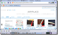 いちおう、全画面モードもあるので、見るだけならなんとかイケそうです。ただし、blog編集は画面が狭くてムリですね。動作は若干モッサリしています(このblogは元々画面表示が遅いのですが)。なお、最新のFlash Playerが入ってないってことで、表示されない箇所があります(コレについては対応策あるかも)。PDFファイル等のリンクは問題なく見れました。